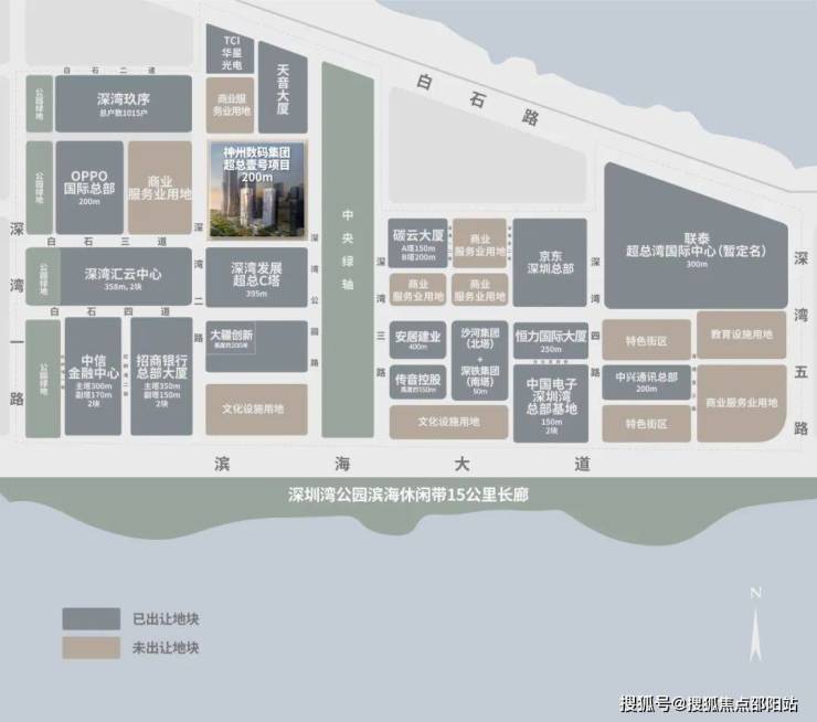 项目位于深圳湾超级总部基地核心区,已吸引腾讯、招商银行等16家世界500强总部入驻,区域总投资3000亿元。未来将形成“商务中枢+自然绿肺”格局,2027年全面运营后年产值有望超4800亿元。