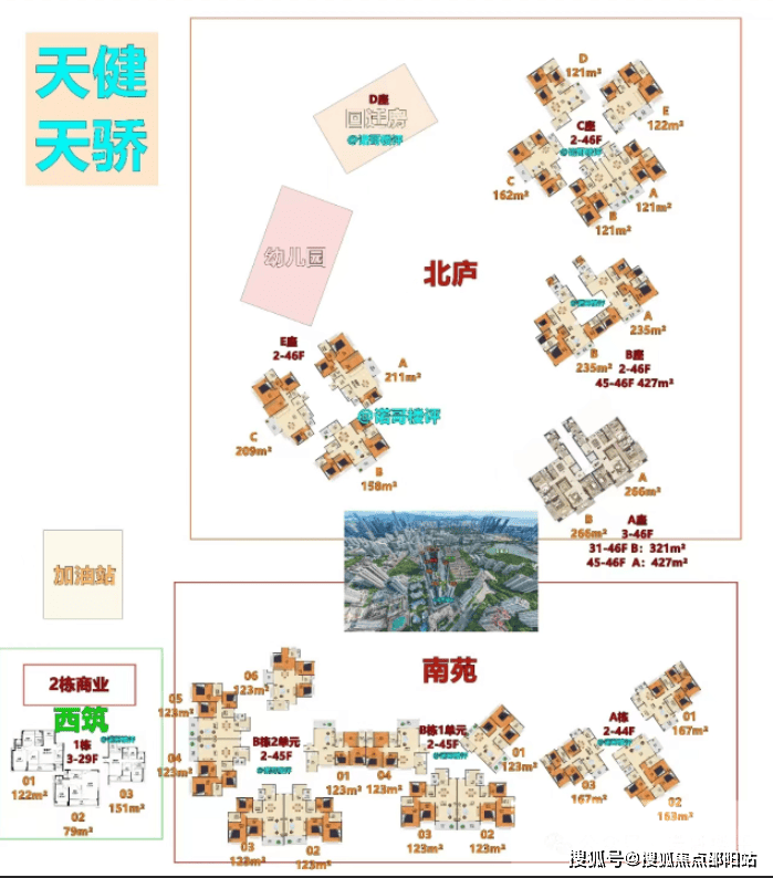 1栋B座:148米,46层,共84户,朝南为主,三梯两户,约235平,401平(顶复)