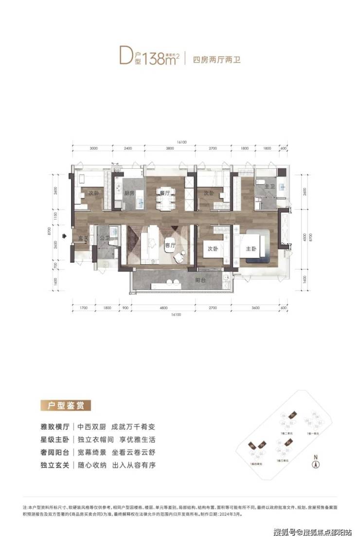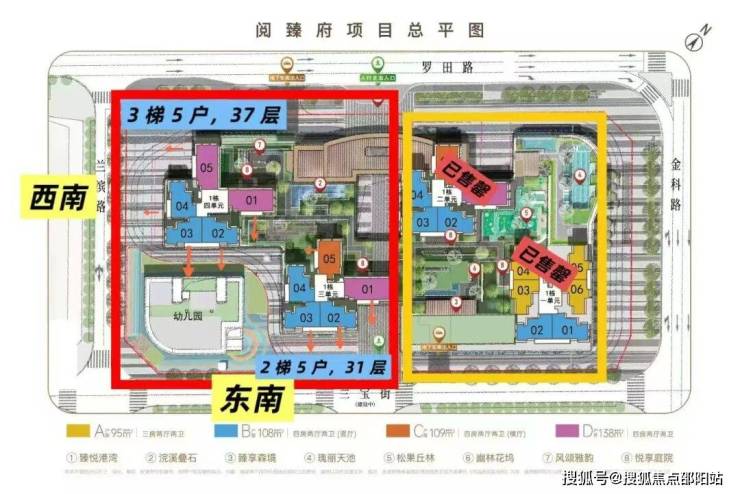 项目主推面积为95㎡-138㎡3-4房户型,主要以东南和西南朝向为主。