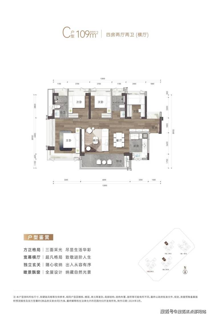 准现楼,今年买明年住(交楼日期预计2026年9月)加推1栋3单元跟4单元,共计约301套,面积108-109-138㎡,所有户型朝东南或西南,优质学区、看海景!