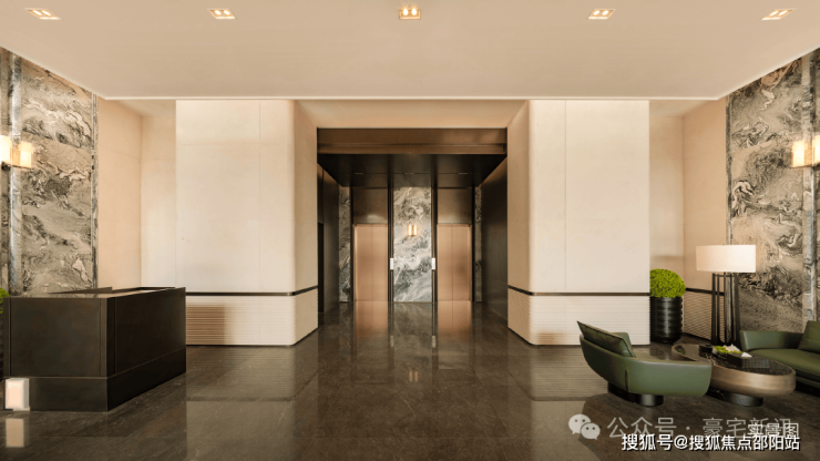 归家礼序:三重尊奢归家,主入口前设置迎宾广场,台地式建筑拾级而上,入社区后景致相依,酒店式的归家奢华大堂,营造归家尊崇仪式感。
