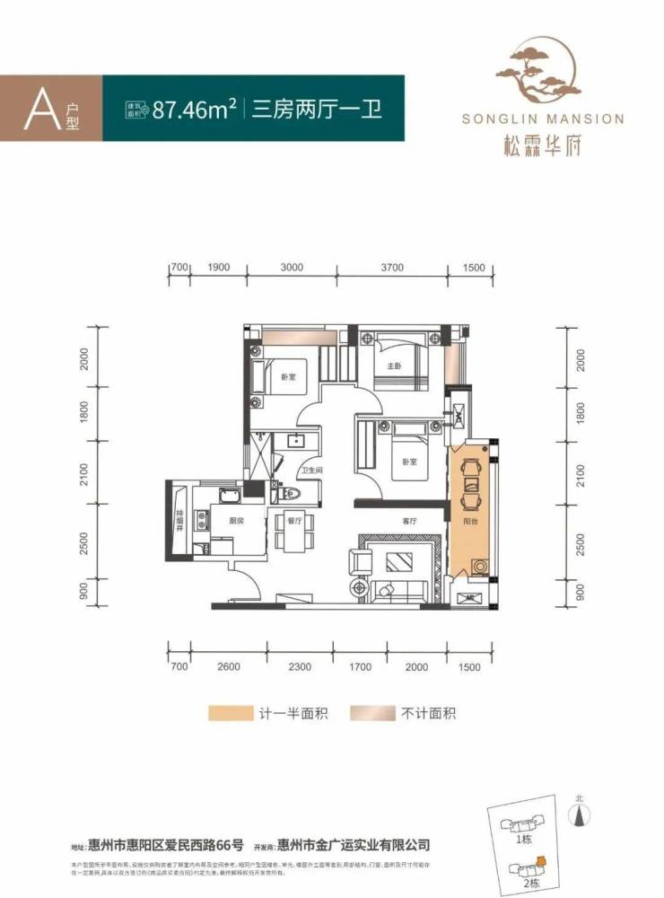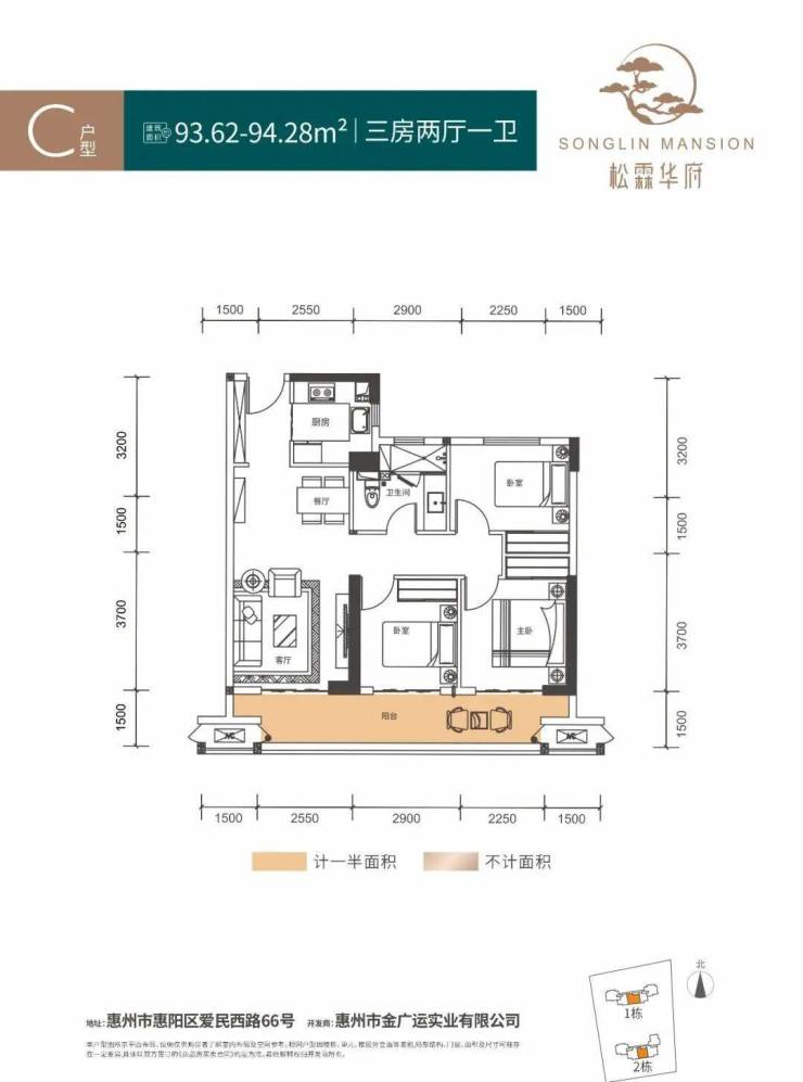 松霖华府位于惠州市惠阳爱民西路66号,沿爱民西路、兴湖路500m距离即是惠阳城市主干道——白云大道,从白云大道无缝连接深圳坪山大道。开车15分钟即可到达深圳地铁14号线坪山沙田站,约50分钟可快速到达深圳各主要区域。项目总占地约8950㎡,总建面约4.5万㎡,容积率3.5,绿化率30%,目前规划有2栋高层住宅及商业,社区内将打造“新中式风情”园林、全龄段架空层、健身区、休闲凉亭等配套。项目周边集商业、教育、医疗、生态于一体——周边三公里商圈环伺(铂金广场、沃尔玛、天虹超市、家乐福、诚杰壹中心等醇熟商业圈),吃喝玩乐购举步即达,尽展都市繁华,悦享受潮流前线;项目周边教育可谓是名校云集,群星幼儿园、群星小学就在家门口,与省一级学校惠阳中山中学仅一墙之隔,另外惠阳区太阳岛中英文学校、土湖小学、东王实验学校、西区第二小学、淡水中心小学(市一级)、惠阳第四中学(市一级)、惠阳第一中学(省一级)、崇雅中学(省一级)等名校在旁,从幼儿园、小学到高中都可近距离上学,高知为伴,迁善而居,润泽孩子的人文气质;十分钟迅速通达三家医院(南湖门诊部、惠阳三和医院、惠阳区中医院、惠民医院的医疗资源),为爱保驾护航;毗邻约33万㎡原生态坪山河湿地公园,坐拥城市绿肺,实现理想人居。松霖华府 ·户型鉴赏
