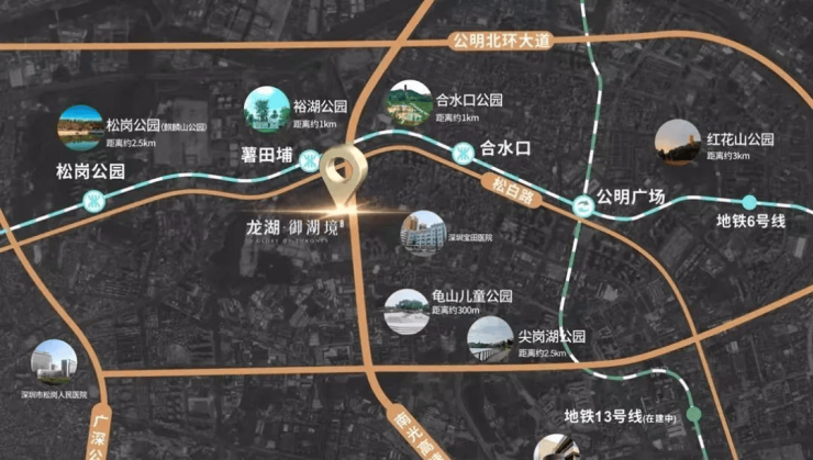 龙湖御湖境距离6号地铁线“薯田埔站”约300米,2站可到公明广场站换乘13号线,直达石岩,南山,3站可到松岗站换乘11号线,直达宝安,南山,前海。