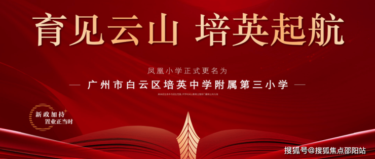 百年名校培英落地!越秀公交天悦云山府正式引进培英教育集团合作办学,所属招生范围内凤凰小学正式更名广州市白云区培英中学附属第三小学,纳入广州培英教育集团管理。
