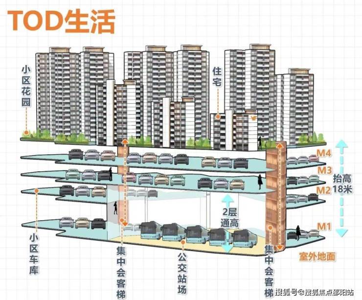 项目打造首个全新的公交TOD模式,项目整体抬高18米,楼下架空层为阳光观景车库和阳光公交站场,下楼即上车,到站即归家,解决回家最后一公里问题,在车库也可以看一线云山景。