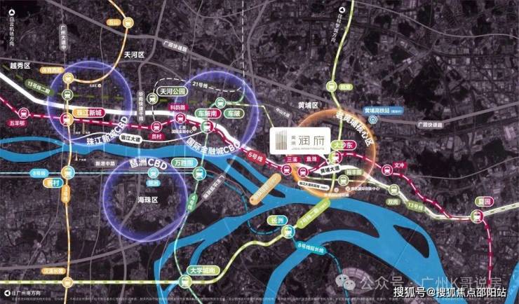 黄埔润府坐拥广州超级换乘站(地铁5/7号线换乘站大沙东站)约300-400米,走路相对也比较近,广州地铁5号线和7号线,承载广州城市发展战略以及粤港澳大湾区城市之间协同发展的重要意义。