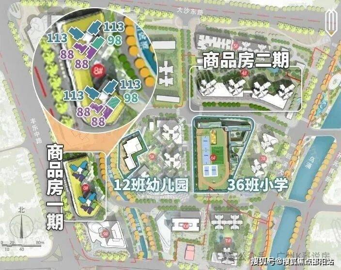 自身配建一所12班幼儿园,一所36班小学,初中依靠周边现有配套。
