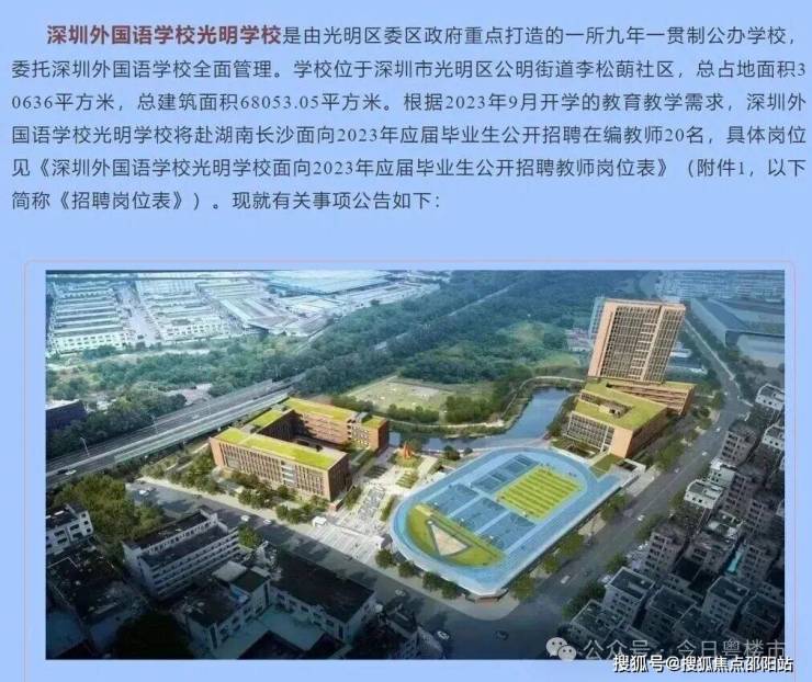 与深圳外国语学校光明学校(深圳四大名校之一)直线距离约800米,