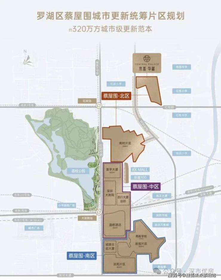 🟫【10年巨著 约320万方城市级更新范本】京基蔡屋围,鼎立深南33公顷土地,深圳唯二城市更新统筹片区。政府主导,京基执笔落地,17家全球设计机构、2000+社会公众人士参与共创共建,打造「环荔枝湖多维绿城」,擘画“城市/社区/人居”的全新模式;