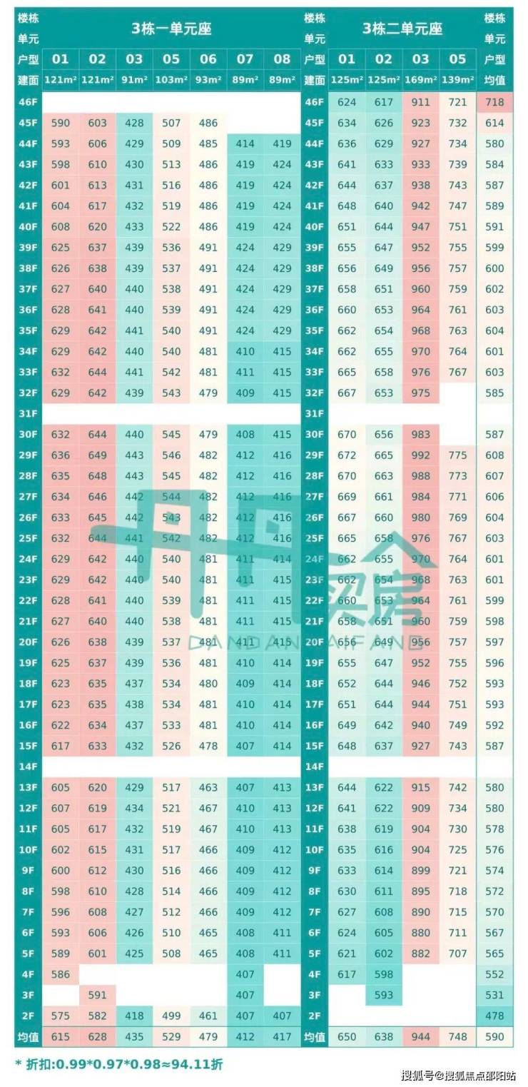 首推3栋1单元、3栋2单元,10月25号开盘,折扣体系VIP 登记0.99×0.97×98折,三房两卫折后最低407万起,四房两卫折后最低461万起