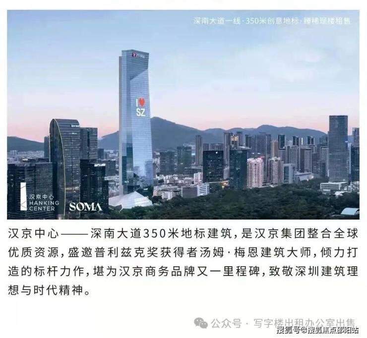 深圳汉京中心,全新一手写字楼出售租赁,南山科技园核心,地铁直连,