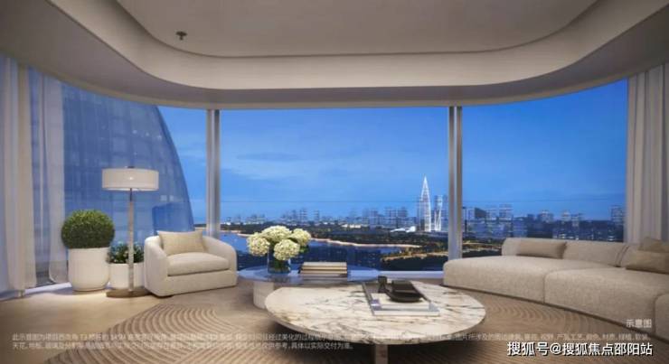 这不仅释放了更多住区内公共空间,也让住宅形式更城市化、公共化,在视觉上更好地融入区域环境。楼栋通过扭转布局避免了高密度布局容易产生的对视问题,设计也让每个户型都有270度观景面,将城市风光极致 “引入” 室内。
