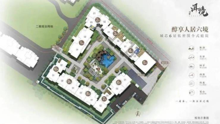 【5】一期总套数:105套;由10栋6层高小高层组成(5栋是公建配套)