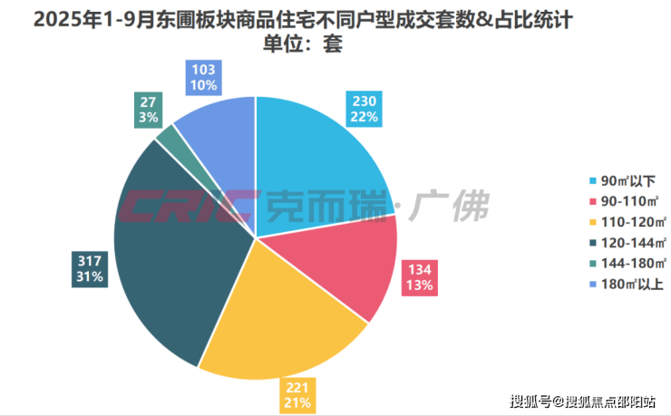 120-144㎡户型成为了今年东圃板块的主力成交产品,累计317套,占比31%。