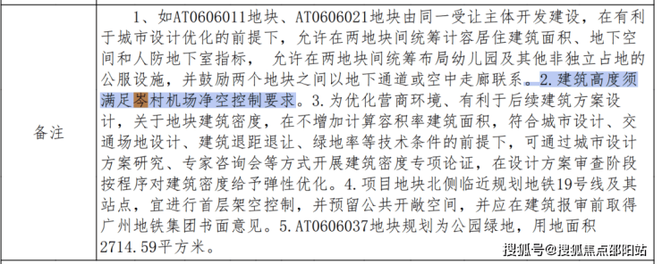 “≤ 2.1的容积率+建筑高度必须满足岑村机场净空控制+新规配建要求”。