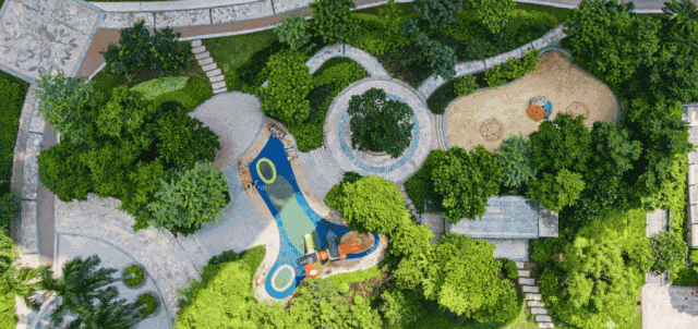 人车分流设计下,凯粤湾在繁华中开辟一片鲜氧绿洲,6万㎡的中央园林,让自然成为家的延伸,让身处城市中央的业主足不出户也能一线亲近自然。层层绿盖之下,阳光泳池、环形跑道、各种休闲去处藏于其间,全龄段均有相应的休闲设施。