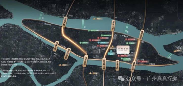 项目周边有双地铁,18号线+3号线可以直达珠江新城、琶洲等核心就业区,通勤便利。距离18号线沙溪地铁站约600-700米,18号线1站万博,2站琶洲,3站珠江新城。去3号线厦滘站有1公里左右,电鸡接驳比较方便。