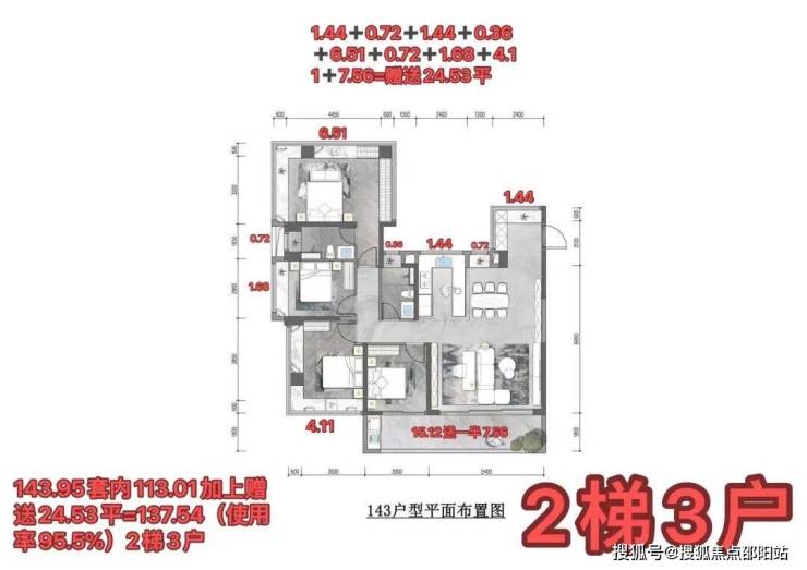 ▻创新Z形类板楼:两梯三户,三面采光,无自遮,超 80% 得房率