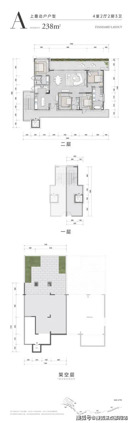 【三期叠拼别墅】面积约245平方米(4房3卫),有室内空间和花园赠送(2025年6月30日交房)