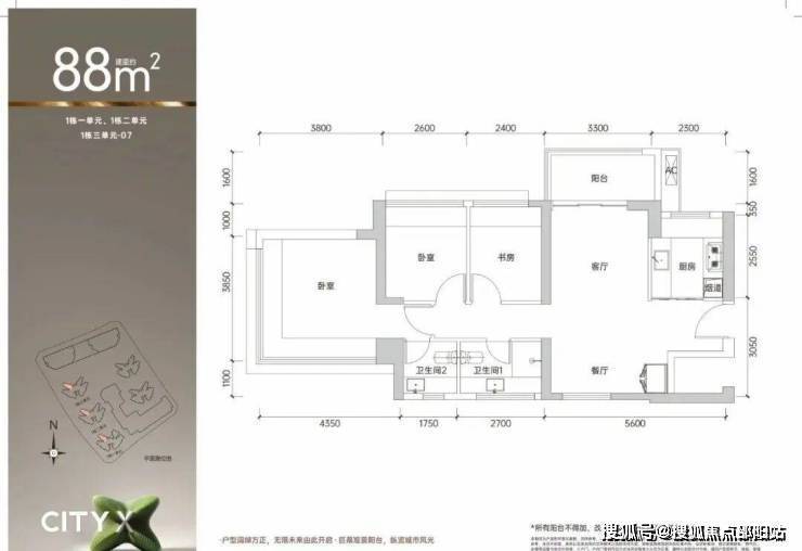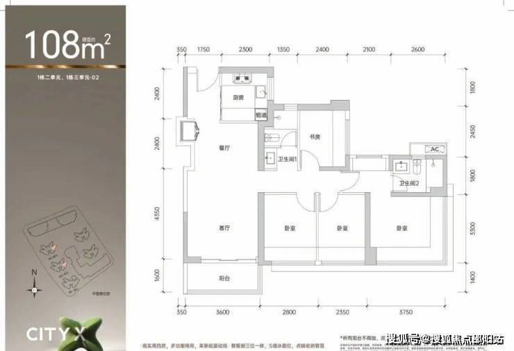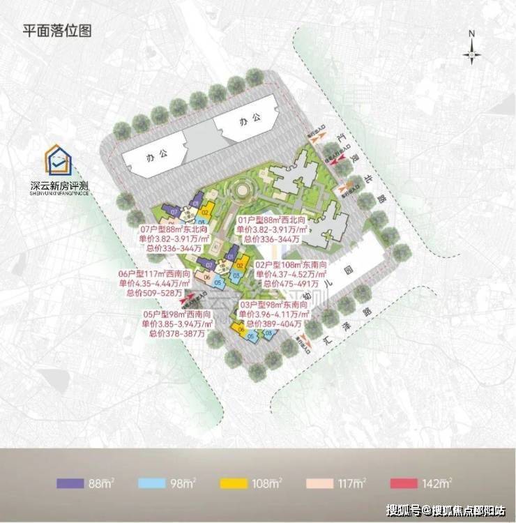 将推出1栋1/2/3单元,3栋1/2单元,共1566套房源,面积有88-98㎡的3房2厅2卫,108-117-143㎡的4房2厅2卫户型,4梯6户设计,本次首推1栋二单元,总共300多套!