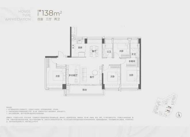 建面约138㎡4房2卫