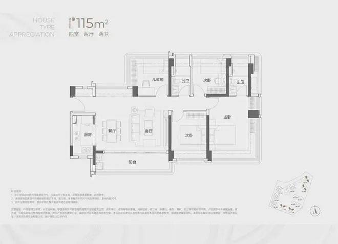 建面约115㎡4房2卫