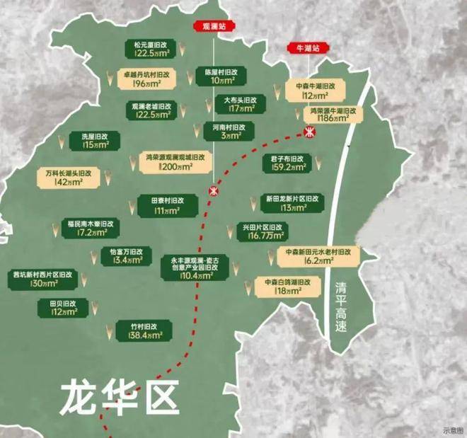 此外,观澜还规划了超40宗旧改,总体量超2500万㎡,相当于3个福田中心区。多家知名房企,如华润、万科、卓越、鸿荣源等品牌开发商已经相继进驻观澜。