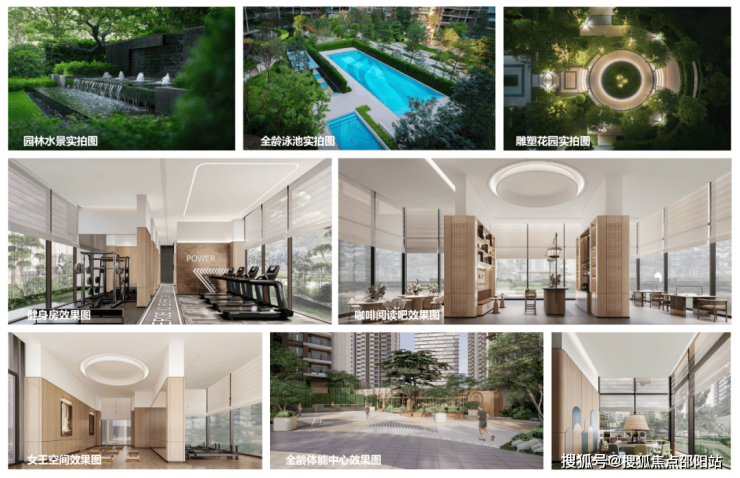 包含健身房、长者空间、瑜伽室、咖啡阅读吧、室内外联动儿童游乐场、全龄双泳池、花园会客厅、全龄体能中心、户外邻里剧场等,适配全年龄段的高端全能泛会所。