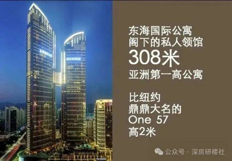 当年的东海国际公寓也是“拉风”了很长一段时间,当时被成为“308米亚洲第一高公寓”,在2016年,还被评为“中国十大超级豪宅”、“亚洲十大超级豪宅”。