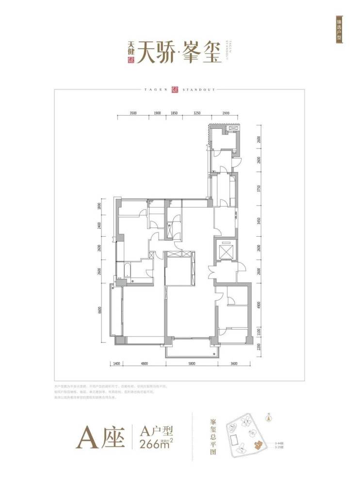 A座:A266㎡4+1房4卫 南北通 3阳台