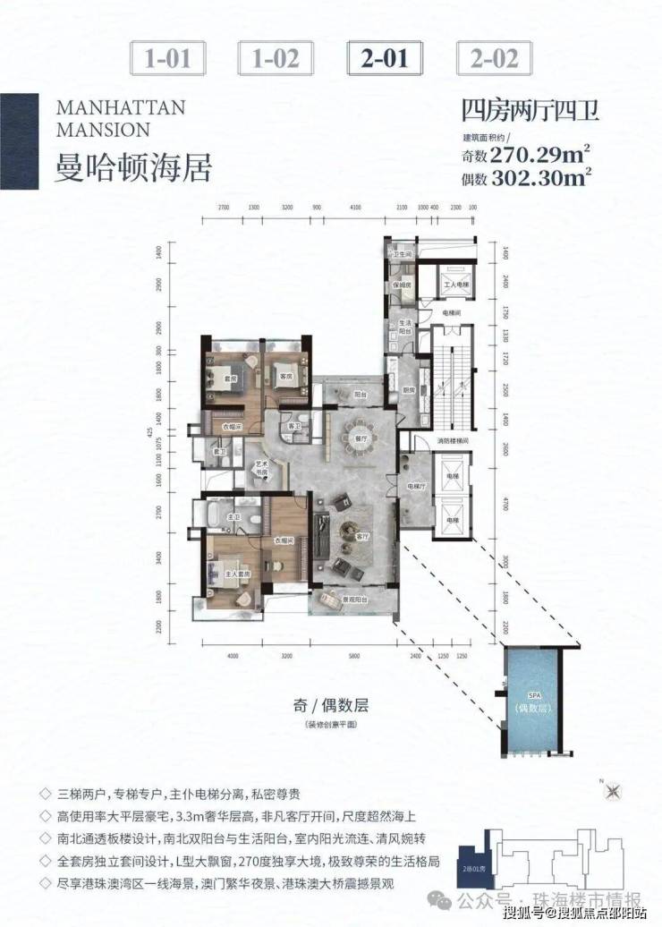 高使用率大平层豪宅,3.3米奢华层高,非凡客厅开间,尺度超然海上
