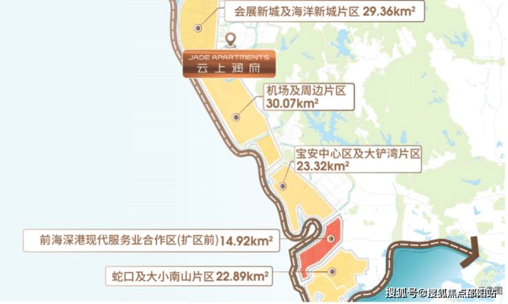 除了产业的支撑外,项目所处的福海片区属于西部扩容后的 “前海”,承接“大前海+大空港+大会展”三大湾区发展极核。