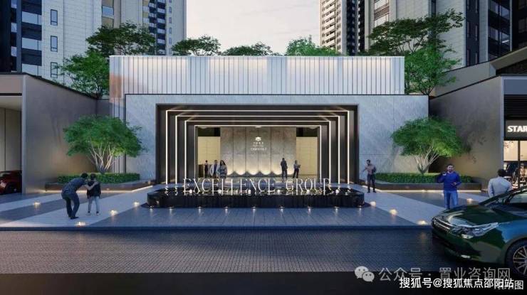 轻奢酒店式落客大门:宽约23米气派门楼,艺术水景与铁冬青乔木