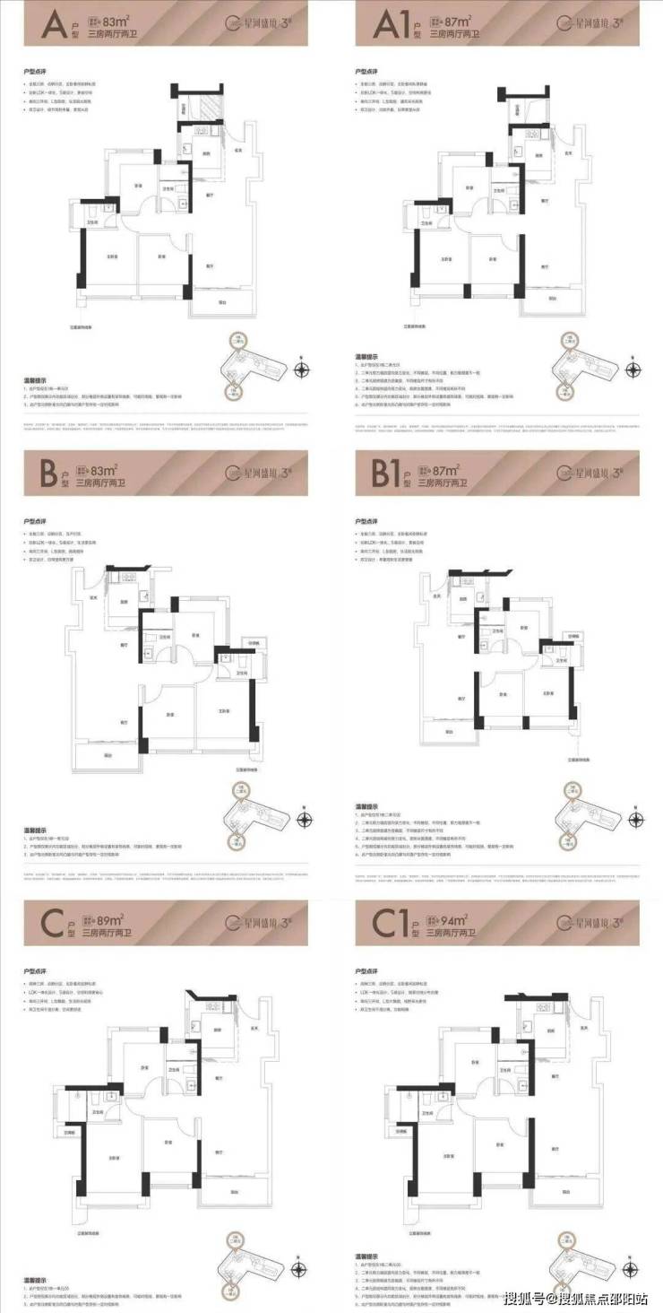 建面约83-87㎡空间,实现三房的同时,保证了双卫,有效延伸家的使用空间,满足品质生活要求。