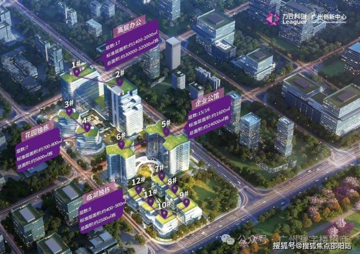 项目位于广州市白云湖数字科技城启动区,计容建筑面积约13.5万平方米,由12栋单体组成,含括临湖独栋、企业公馆、高层办公、花园独栋等多种建筑形态。