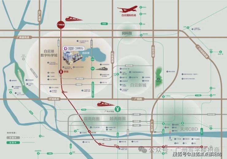 3站地铁抵达亚洲最大铁路综合枢纽——广州白云站,20分钟可达白云机场;