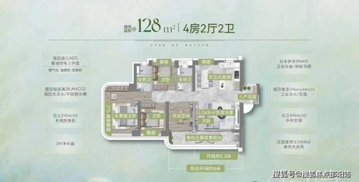 创新采用LDKB-X一体化空间设计,5.3米阔景方厅搭配独立岛台,15米南向采光面实现四开间朝南。