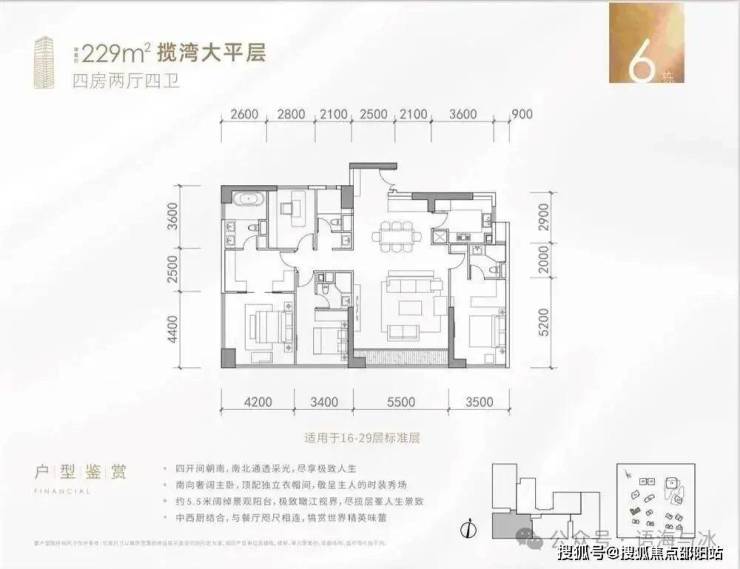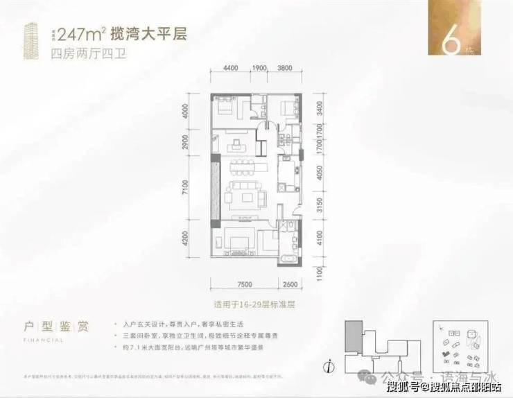 产品方面,项目提供多样化高端住宅配置,满足不同层级的生活需求。叠墅产品位于7栋与10栋,面积区间240-310㎡,为城市中轴线上罕有的南向首排一线江景叠墅,空间层次丰富,居住私密性强;大平层分布于6栋高区至低区,面积段覆盖79-400㎡,其中高区单位具备270°观景视野,尽揽珠江壮阔与小蛮腰天际;中低区单位则打造实用型江景住宅,面宽设计极致优化,5开间朝南,13米以上阳台面宽,营造超阔观江视界。loft公寓位于5栋,面积段为41-110㎡,买一层送一层,精装交付,是市场稀缺的投资型优质产品。另配备写字楼产品,单层面积达1060㎡,整体约4万㎡,匹配城市总部级办公需求,成就金融城商务新地标。