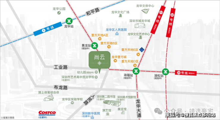 ⭐4号线(已开通):龙华站直线距离约1000m,深圳纵向城市交通中轴。