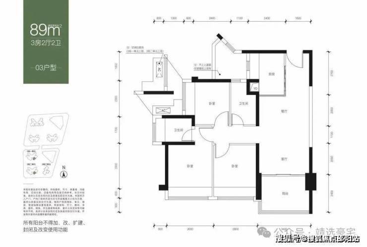 5️⃣唯一王炸产品:市场王炸户型,82平做3房2卫,主卧南北通透
