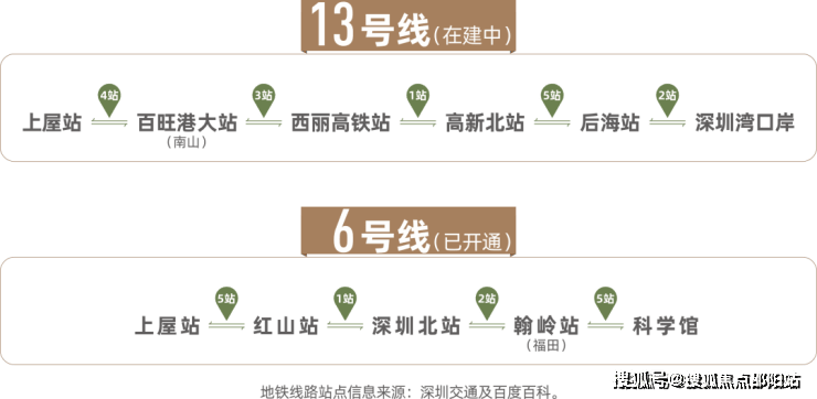 13号线据深圳交通局官网称将在2025年年底开通,该线路也是深圳3条快线之一,号称“深圳科技核心大动脉”,从南到北,串联深圳湾总部基地、后海中心、南山科技园、西丽高铁枢纽、留仙洞总部基地、白芒科研机构、宝安石岩科创城等多个重要片区。沿线华为、中国电子、腾讯、阿里等500强汇集,大批高新人才聚集,形成科创阵地,势必引领片区经济崛起。全程时速120公里,4站到南山百旺港大站,7站到南山西丽高铁站,8站到高新北。