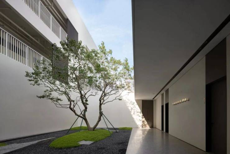 于连廊和庭院里驻足,装下一段放空、沉静的时光。静下心来,仔细感受,自己、光影、树木和此时此刻,都是独一无二的存在,是不会再次重复的当下。