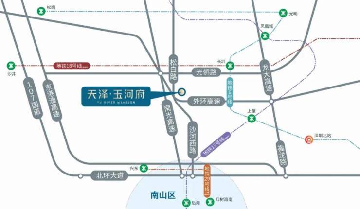 天泽玉河府近享山河湖自然盛景,家门口深圳母亲河茅洲河,石岩湖湿地公园、大雁山森林公园环绕周边。推窗俯瞰茅洲河水碧波流淌,高区对望大雁山森林公园及石岩湖水库,草木繁盛、绿叶成荫。夜幕时分,窗前是城市的灯光璀璨,繁华景象。