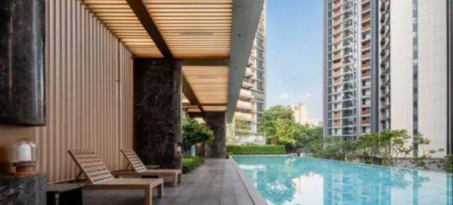 小区配套:社区内部配建一所九年一贯制学校和一所幼儿园,1000平下沉式精致会所,包含健身房、游泳池、瑜伽室、咖啡吧、阅读室等多个社交空间,这个上千方的会所,香槟色金属质感外立面,辅以大面积落地玻璃,充满了现代感。