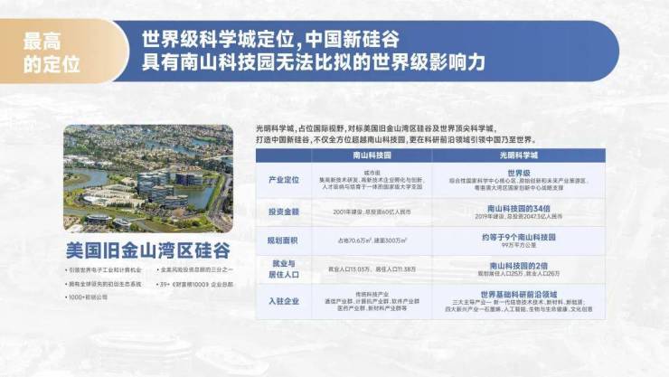 光明科学城力争建成竞争力与影响力卓越的世界一流科学城。光明中心区未来将打造成为深圳北部中心的“城市心脏”。2021年GDP增速排名全市第1,多家光明企业荣登“2021深圳500强企业榜单”。