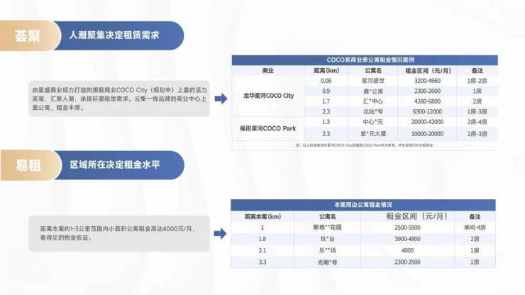 距离本案约1-3公里范围内小面积公寓租金高达4000元/月,看得见的租金收益。