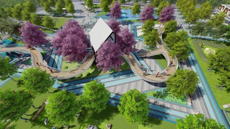 项目整体绿化覆盖率高达74%,约50000㎡森林主题园林,覆盖全龄段全周期活动场域,如亲子游玩设施、篮球场羽毛球场、玻璃栈道、森林树屋、康体娱乐中心等,呈现全天候活力户外天地。