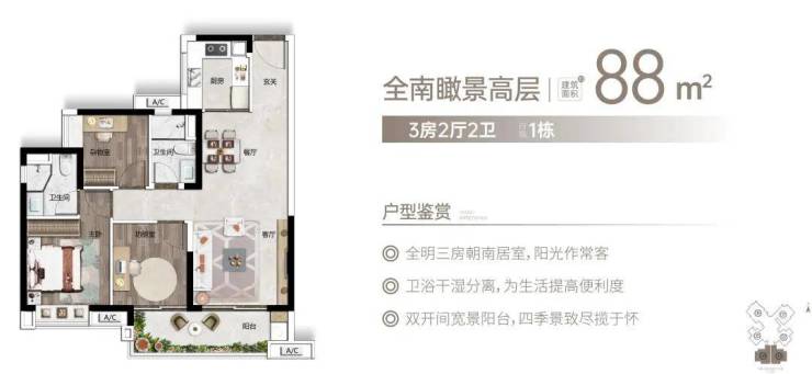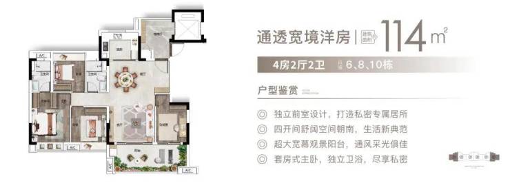 项目户型采用的是绿地2.0健康宅体系,以健康城区、健康社区、健康家居三大健康体系为基础逻辑,将建筑与健康的关系融合考虑,主要为建筑面积约75-114㎡的三至四房全南向宅邸,空间利用率高达约88%,将中小户型的空间开发提升到了新的高度。