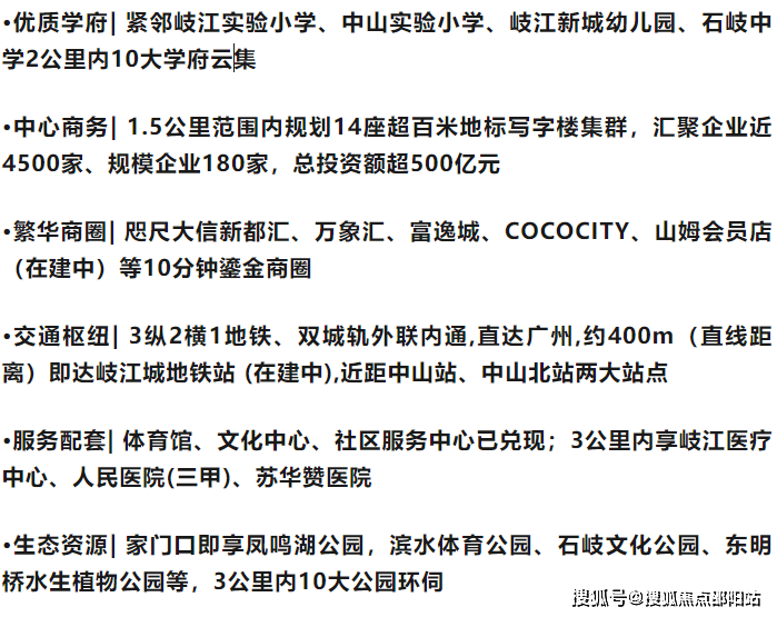 交通网络的升级更具战略意义,项目紧邻岐江新城地铁站、深中通道、深茂铁路、广珠城轨等交通动脉,快速对接深圳前海、广州南沙,形成“半小时经济圈”,将项目与湾区城市群紧密相连;