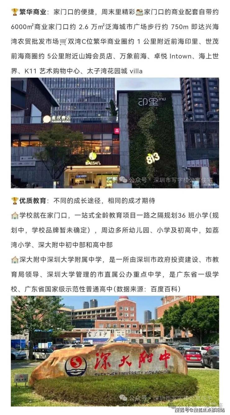 1、政策高地,未来规划有看点。2023年12月《前海总规》获批,提出了前海深港现代服务业合作区发展宏伟蓝图,将享受包括财税、法治、金融、贸易等一揽子优势政策。前海将加快与世界对话节奏,加快推进大宗商品贸易创新发展,建设大宗商品现货交易平台,将呈现出更多的全球属性。 2、文体教育交通医疗等资源未来高配。前海是深圳乃至全国未来20至30年发展引擎、片区内拥有一系列高规格配套如前海运动公园、前海石公园、国家博物馆深圳馆、前海演艺中心、泰康国际医疗、哈罗公学、南二外等。目前已经有3条地铁,未来将增加至6-8条地铁,是集轮渡母港、游艇中心、高速公路、轨道交通、机场接驳站等综合性大型交通枢纽。